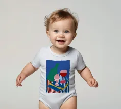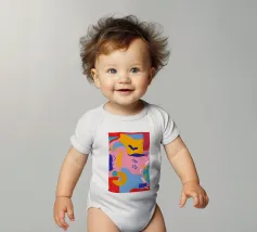 Una composizione astratta caotica e divertente in stile Memphis, con un assortimento casuale di forme geometriche, ghirigori e motivi. L'opera d'arte è energica, giocosa e ha una fresca atmosfera retrò.