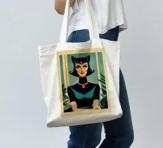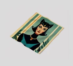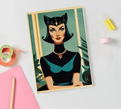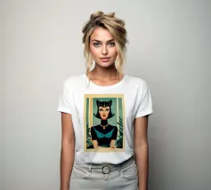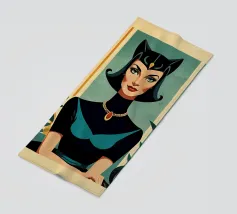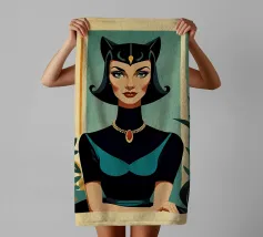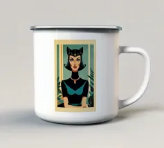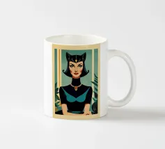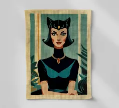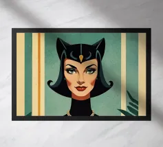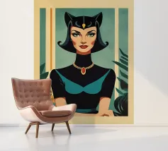 Questo elegante design mostra una donna stilizzata con una maschera da gatto, una catena d'oro e uno sguardo espressivo. "Feline Queen" combina il glamour vintage con la forza moderna - un simbolo di femminilità, fiducia in se stessi e attrazione.