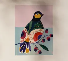 "Patchwork Perfection" captures the vibrant beauty of birds, each adorned in a mosaic of colorful patterns. This art print celebrates the harmony of nature’s palette through intricate feathered details.