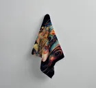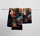Uno squisito ritratto fantasy che unisce eleganza regale e simbolismo cosmico. La Sovrana Celeste raffigura una potente figura femminile adornata con un copricapo dorato e ornato da motivi lunari e celestiali. Nastri fluenti di turchese, oro e cremisi si intrecciano intorno a lei, creando un'aura radiosa di misticismo e forza. Una celebrazione della femminilità divina, dello stile art nouveau e dell'intricato artigianato digitale.