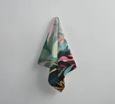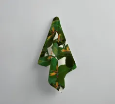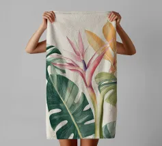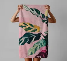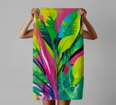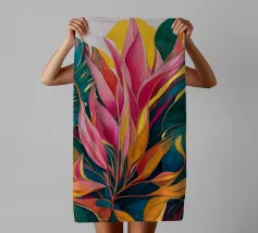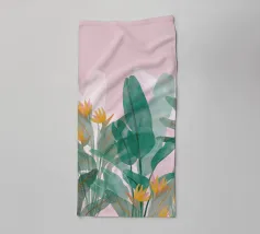 Questa opera d'arte presenta una pianta con lunghe foglie verdi e fiori rosa. Lo sfondo è costituito da forme astratte in rosa e verde, che aggiungono un tocco di eleganza al soggetto botanico.