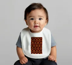 Audaci motivi geometrici con spirali, zigzag, punti e triangoli creano un vivace disegno simmetrico. I colori vivaci come l'arancione, il verde e il giallo contrastano formando un'immagine di grande impatto.