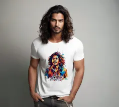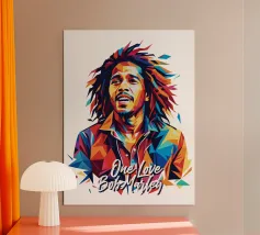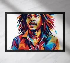 Questo ritratto di Bob Marley in stile WPAP cattura il suo look iconico utilizzando angoli audaci e colori vivaci. La sua espressione rilassata e i suoi caratteristici dreadlocks sono resi con contrasti netti, dando un senso di movimento e di vita. Lo sfondo si ispira a motivi astratti di ispirazione reggae, rendendo il disegno vibrante e fresco. Il disegno unisce perfettamente lo status leggendario di Marley con uno stile artistico contemporaneo.