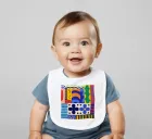 A bold and dynamic abstract composition filled with stylized flowers, geometric patterns, and organic shapes in a vibrant primary color palette. The artwork has a playful, folk art feel with a modern twist.