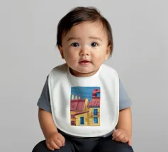 Un'energica veduta dall'alto cattura una cascata di tetti colorati, gialli, rossi e blu, che si contendono lo spazio. Il dipinto è una celebrazione vibrante, quasi astratta, della trama densa e vivace di una vecchia città.