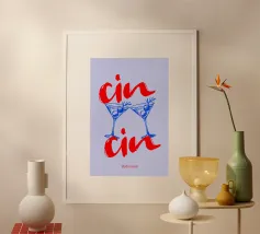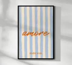 Un poster minimalista ma espressivo che trasmette la leggerezza mediterranea con una sola parola: "Ciao", il saluto italiano multiuso che può essere sia un saluto che un addio.