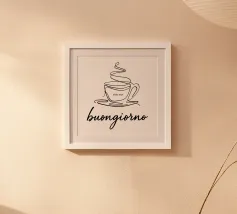 Un poster minimalista ma espressivo che trasmette la leggerezza mediterranea con una sola parola: "Ciao", il saluto italiano multiuso che può essere sia un saluto che un addio.