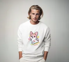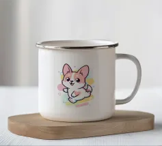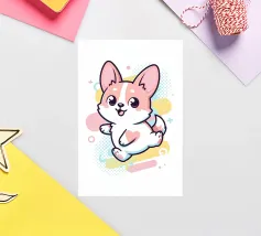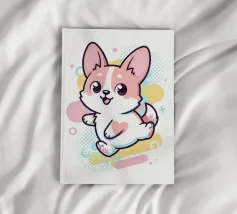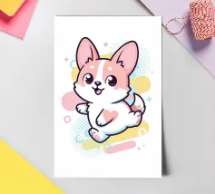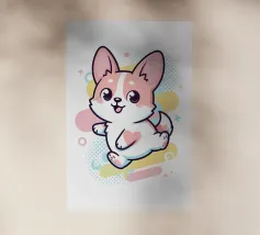 The funny little corgi delights all generations and radiates joie de vivre every day. Set off by subtle pastel colours.