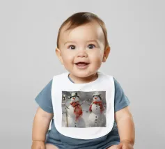 I due pupazzi di neve sono mano nella mano e mostrano le loro espressioni amichevoli. Ognuno di loro è adornato con un cappello e una sciarpa, circondato da fiocchi di neve che cadono sotto il cielo notturno invernale.
