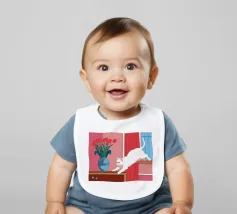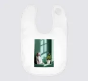A peaceful white cat sits on a sunlit windowsill, watching butterflies flutter above a cactus in bloom. Soft shadows and green tones create a tranquil, dreamlike mood—perfect for adding calm and warmth to any space.