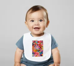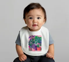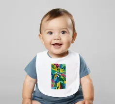 Una composizione astratta alta e stretta, piena di forme e motivi di foglie colorate sovrapposte, che suggerisce una fetta vibrante di una fitta giungla verticale.