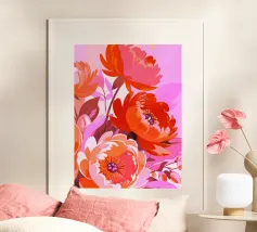 Un bouquet floreale gioioso e spontaneo, disegnato con uno stile minimale e stampato in una fresca tavolozza estiva di rosso, pesca, acqua e ocra su un morbido sfondo blush. Il vaso a righe bianche e nere aggiunge un contrasto grafico, mentre le forme floreali libere evocano un'estetica rilassata di ispirazione giapponese. Con il suo elegante formato verticale, quest'opera d'arte dona un tocco moderno ed edificante alle pareti, alla cancelleria e all'arredamento della casa. Progettato come pezzo di accompagnamento in una coppia coordinata.
