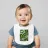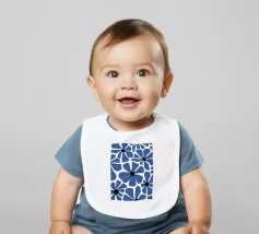 Un motivo di fiori stilizzati presenta grandi petali verdi e piccoli petali azzurri, ciascuno con un centro giallo. Il disegno è astratto e ripetitivo e trasmette un'estetica audace e moderna.