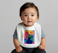 Un allegro ed espressivo bouquet di fiori gialli in un vaso blu brillante con due grandi manici. Lo sfondo giallo solare esalta la sensazione di gioia pura, semplice e senza fronzoli.