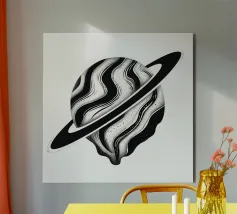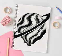 Questa straordinaria illustrazione ad alto contrasto presenta una versione surreale e astratta di Saturno. La superficie del pianeta è rappresentata con motivi ondulati, simili a onde, che creano un senso di flusso dinamico e di tumulto interiore. L'elemento più accattivante è l'effetto "pianto", in quanto il pianeta sembra sciogliersi e gocciolare nel vuoto, con i suoi famosi anelli a fare da contrappunto elegante e crudo. La tavolozza in bianco e nero, combinata con il lavoro di stippling e di linee, conferisce una qualità unica, disegnata a mano, perfetta per coloro che apprezzano l'arte spaziale con un tocco oscuro, emotivo e introspettivo. Questo pezzo sarebbe un id