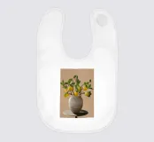 Una natura morta fresca e vivace con un vaso di ceramica pieno di rami di limone. Con i suoi toni caldi e lo sfondo minimalista, quest'opera d'arte porta il fascino mediterraneo e la bellezza naturale in qualsiasi cucina o spazio abitativo.