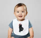 Adorabile gatto nero impigliato in luci natalizie colorate: un'illustrazione festiva e divertente per gli amanti dei gatti e dell'arredamento accogliente.