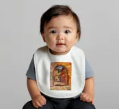 Una vista attraverso un arco in pietra rustica e rovinata dalle intemperie rivela una vivace scena di mercato, con i toni caldi e terrosi dell'architettura che creano una cornice senza tempo per un momento di vita quotidiana.