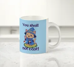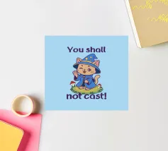 Un simpatico gatto mago con un mantello blu si trova su un cerchio magico e alza la zampa con un ammiccamento sfacciato. Questo design giocoso parodia l'iconica strategia blu di contrastare le magie in Magic: The Gathering. Perfetto per i giocatori di controllo, i fan dei mazzi blu e tutti coloro che amano dire "no" con stile.