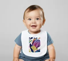 Un'illustrazione splendidamente dettagliata cattura l'eleganza di un'orchidea in fiore, con vibranti petali rosa, bianchi e gialli contrapposti a foglie blu intenso.