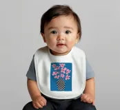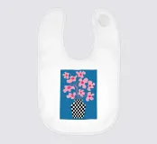Un'illustrazione audace e grafica di un bouquet di semplici fiori rosa in un sorprendente vaso a scacchi bianchi e neri. L'alto contrasto e le forme semplici creano un pezzo moderno e giocoso con un forte impatto visivo.