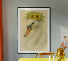 Un'illustrazione divertente ed elegante di un pinguino con papillon in una moderna tavolozza di colori verde acqua. Questa stravagante opera d'arte conferisce un'atmosfera giocosa ed elegante a qualsiasi parete. Perfetto per gli amanti degli animali, per le camere dei bambini, per gli uffici o come regalo unico.