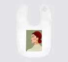 This highly elegant profile portrait showcases a woman with rich, ruby red hair meticulously styled into a bun. Her thoughtful, serene gaze, coupled with a simple gold earring against a soft green background, creates a timeless aura of classic beauty and sophistication.