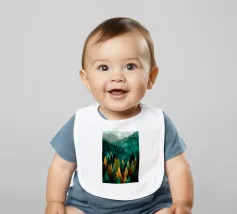 Il dipinto digitale di una foresta autunnale presenta sagome scure di alberi su uno sfondo caldo e dorato. L'opera d'arte testurizzata mostra un fogliame dettagliato nei toni dell'arancione e del marrone, creando una scena di bosco serena e suggestiva.