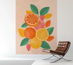 Un'illustrazione moderna e minimalista che celebra la freschezza degli agrumi estivi. Limoni, arance e pompelmi si intrecciano tra foglie colorate per creare una composizione vivace e armoniosa. Perfetto per aggiungere un tocco di energia e natura al vostro arredamento, questo disegno è ideale per stampe d'arte e accessori lifestyle.