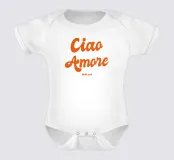 Un motivo ridotto ma potente che cattura il calore e l'affetto italiano in forma tipografica: La scritta "Ciao Amore" appare in corsivo curvo e grassetto in rosso vivo - senza ombre o effetti, ma chiara, diretta ed emotiva. Sotto, più piccola ed elegante, la firma "studio scusi", che sembra un timbro personalizzato.