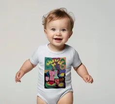 Un collage vibrante e caotico di motivi contrastanti, tra cui righe, pois e forme organiche. La gioiosa esplosione di colori e texture crea un'opera d'arte energica e piena di vita.