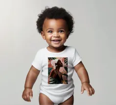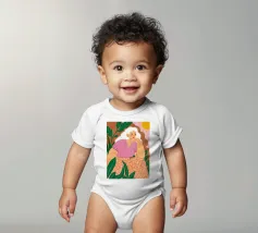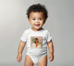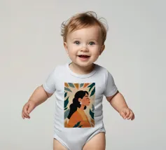 Un bellissimo ritratto stilizzato di due volti di donna di profilo, leggermente sovrapposti. I colori caldi e tenui e lo sfondo a righe creano un'opera d'arte delicata e intima che parla di legami e identità.