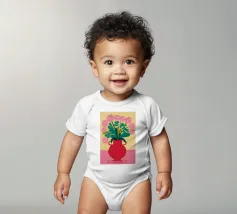 Una composizione astratta alta e stretta, piena di forme e motivi di foglie colorate sovrapposte, che suggerisce una fetta vibrante di una fitta giungla verticale.