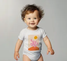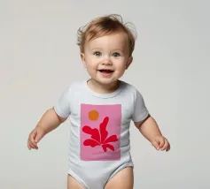 arte botanica astratta, forme moderne di piante, foglie di corallo rosa, illustrazione del sole arancione, sfondo blu pastello, design floreale minimalista, natura astratta contemporanea, grafica fogliare giocosa, opera d'arte dalle forme audaci, stampa ispirata a Matisse, atmosfera moderna tropicale, flora astratta vibrante