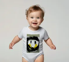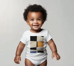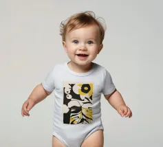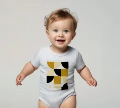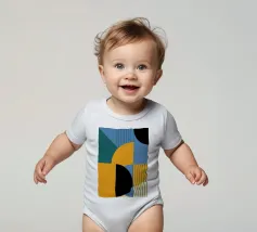 Audaci motivi geometrici si intrecciano con un sorprendente accento giallo in un design che enfatizza il contrasto. Le forme curve e angolari in bianco e nero creano un flusso visivo dinamico.