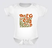 Una gioiosa esplosione di energia vintage: i vivaci fiori arancioni e le foglie verdi catturano l'atmosfera libera degli anni '60. Questo design floreale vivace dona un tocco retrò e un'atmosfera da metà del secolo scorso a qualsiasi interno moderno.