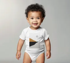 Le forme geometriche formano un paesaggio montano minimalista, con un cerchio in alto che ricorda il sole. Sotto è raffigurato un riflesso invertito delle cime, che crea un disegno simmetrico.