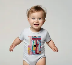 Una composizione astratta audace ed energica, caratterizzata da una griglia di motivi geometrici colorati. Il vibrante mix di forme, dai soli alle scacchiere, crea una festa visiva gioiosa e dinamica.