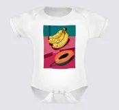 Un'illustrazione audace e ispirata alla pop art di banane e papaya su un piatto rosso brillante. I colori ad alto contrasto e lo stile grafico creano una dichiarazione vibrante e giocosa.