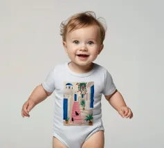 Un gatto bianco sonnecchia pacificamente in un classico arco mediterraneo ornato di bouganville rosa, affacciato su un mare blu. Questo pezzo cattura perfettamente il fascino sereno e solare di un'isola greca.
