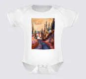 Una strada tortuosa fiancheggiata da alti cipressi è immersa nella calda luce dorata del crepuscolo; lo stile espressivo e pittorico crea un viaggio sognante e romantico attraverso la campagna.