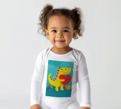 Questo dolcissimo dinosauro vuole diffondere l'amore, stringendo con gioia un cuore rosa acceso e fluttuando su un letto di nuvole colorate. Con i suoi grandi occhi luminosi e la sua espressione giocosa, questo dino porta un fascino irresistibile in ogni ambiente. Le vibranti tonalità di arancione, verde e rosa lo rendono una delizia visiva per gli amanti dei dinoidi di tutte le età. Che si tratti di una simpatica aggiunta al vostro arredamento o di un regalo divertente, questo adorabile dinosauro è pronto a condividere sorrisi e calore!