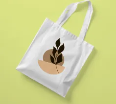 Una composizione astratta presenta un semplice sfondo geometrico marrone e beige con un delicato disegno al tratto di un ramoscello frondoso. Il design minimalista enfatizza gli elementi naturali in un equilibrio armonioso.