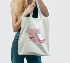 Un simpatico axolotl rosa è raffigurato mentre gioca a un videogioco con un controller per console. Lo sfondo è in tinta unita marrone e mette in risalto l'espressione giocosa e il design vivace del personaggio animato.