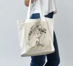 Un uccello è appollaiato su un ramo con grappoli d'uva viola circondati da foglie verdi. I colori vivaci dell'uva e delle foglie creano un contrasto sorprendente.