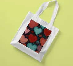Un filo ornato da ritagli a forma di cuore in varie tonalità di rosso è appeso su uno sfondo scuro. Morbide luci calde illuminano i cuori, creando un'atmosfera romantica per San Valentino.