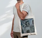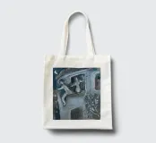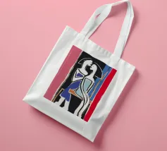 Questa litografia di Marc Chagall illustra una scena biblica, probabilmente raffigurante il re Davide che fugge da una finestra mentre la moglie Michal fa la guardia. Eseguita nella caratteristica tavolozza blu, grigia e bianca di Chagall, cattura un momento di dramma, lealtà e passione. Le figure sognanti e fluttuanti e la semplice ambientazione architettonica trasmettono una narrazione emotiva e senza tempo.