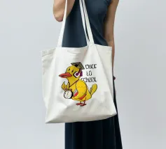 Un'esuberante anatra dei cartoni animati si erge con aria di sfida, indossando occhiali da sole e assumendo una posa da duro. Il testo in grassetto in stile graffiti recita "Don't Duck With Me", con spruzzi d'acqua e vivaci colori urbani.