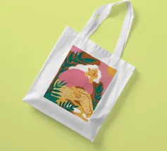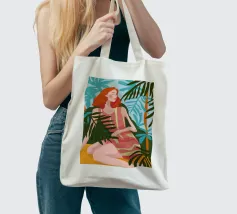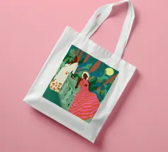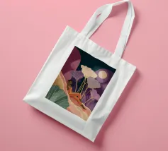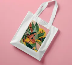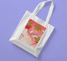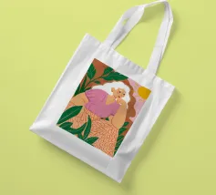 Un bellissimo ritratto stilizzato di due volti di donna di profilo, leggermente sovrapposti. I colori caldi e tenui e lo sfondo a righe creano un'opera d'arte delicata e intima che parla di legami e identità.