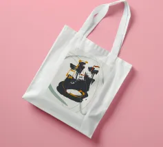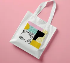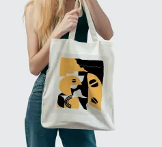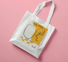 Forme astratte in nero, bianco e oro creano una composizione dinamica con curve fluide e angoli acuti. Il gioco di colori aggiunge profondità e movimento, suggerendo un senso di energia e contrasto.